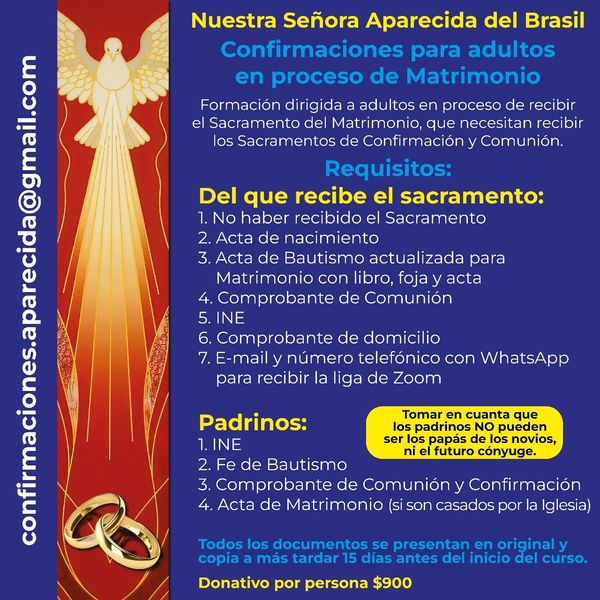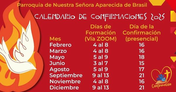 Los retiros son por vía zoom y el Sacramento de la confirmación se lleva a cabo en día Domingo a las 4:00 p.m.